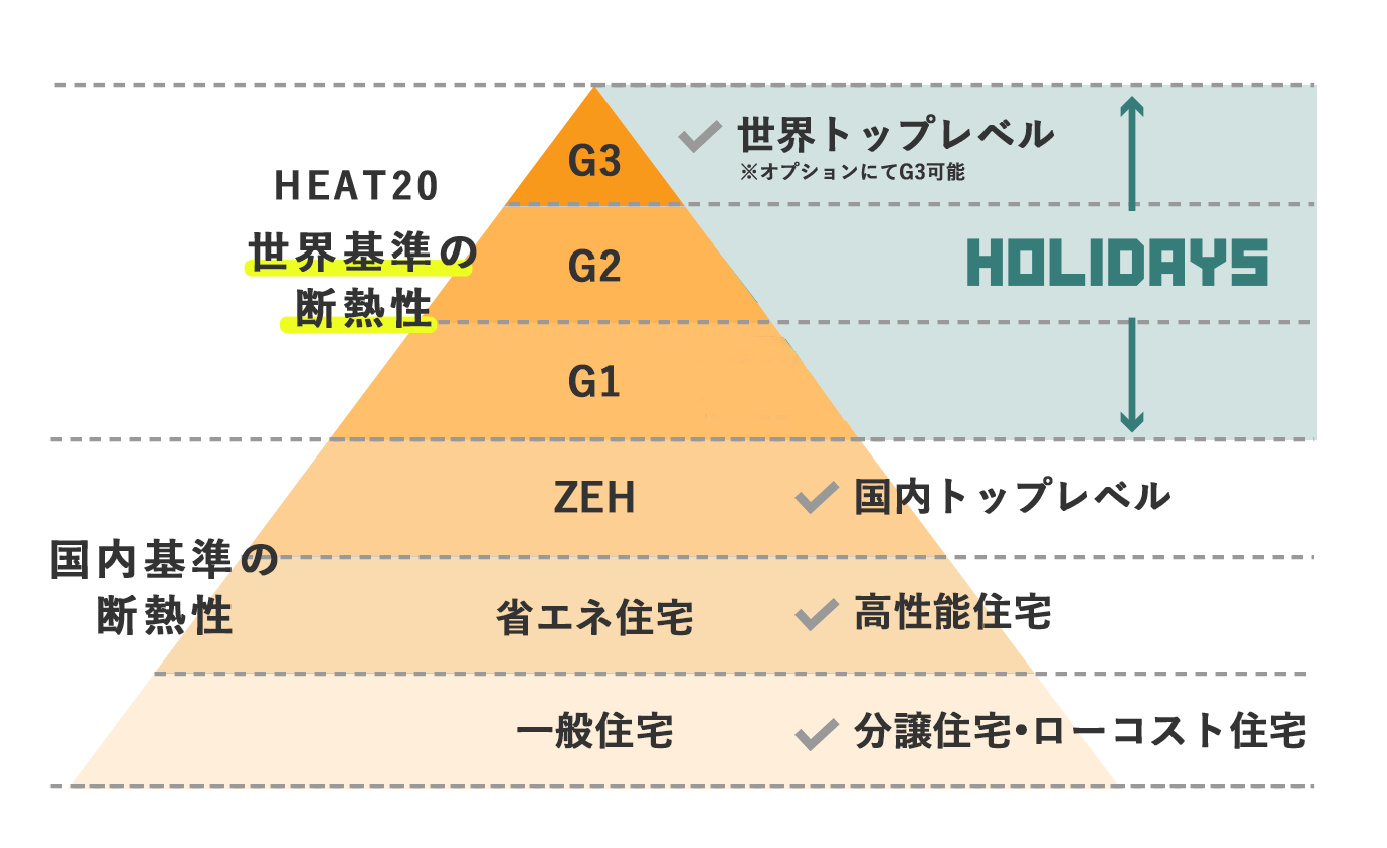 ZEH、省エネ住宅を超える、国内でもっとも厳しい「HEAT20基準(G1~G3)」をクリア。