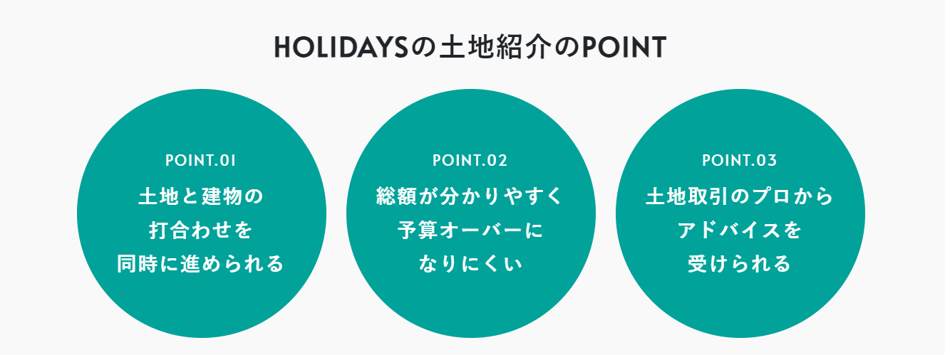 HOLIDAYS 3つの特徴