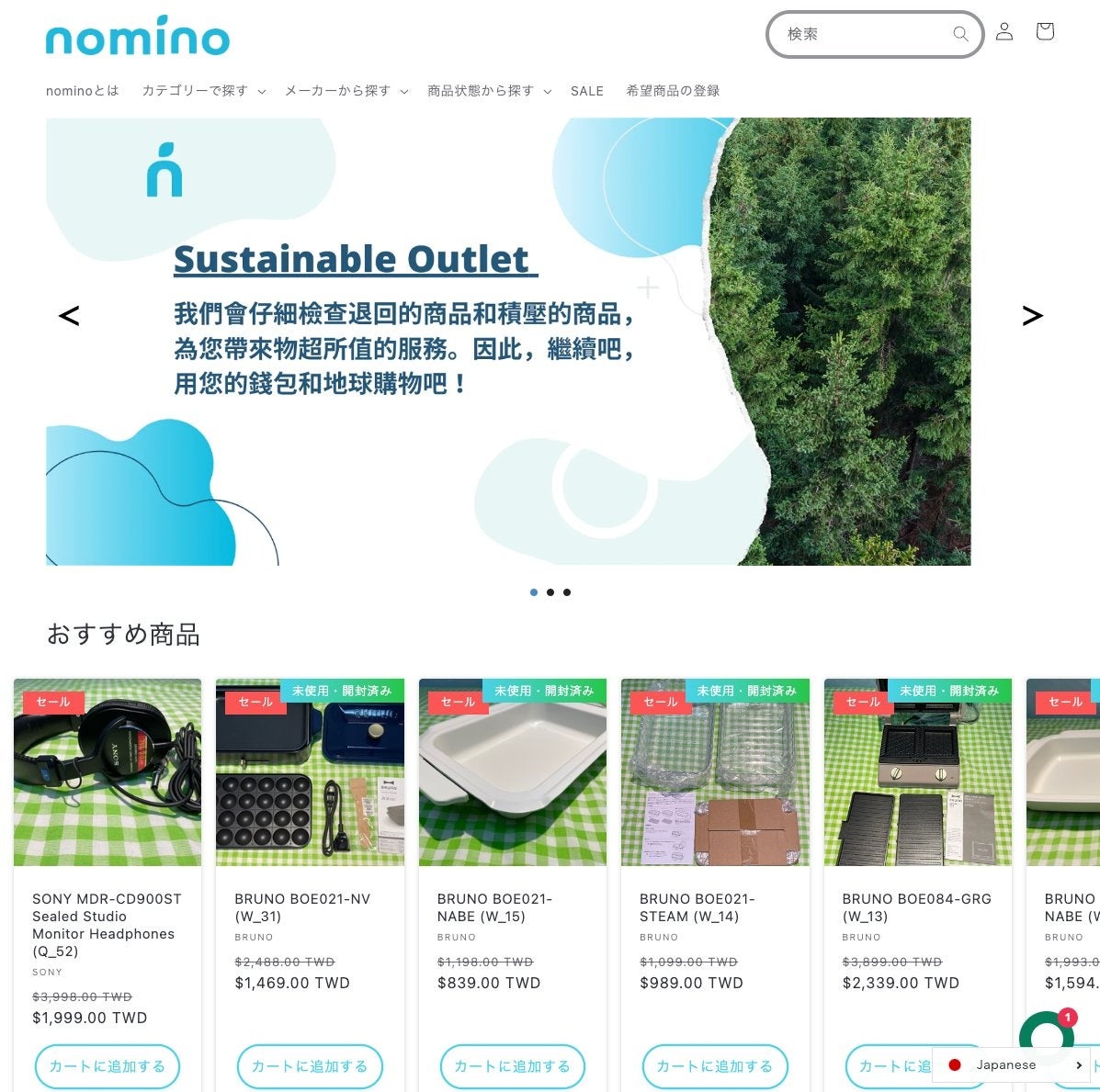 返品商品や過剰在庫品を取り扱うサステナブルアウトレット ECサイト「nomino」を台湾でオープン