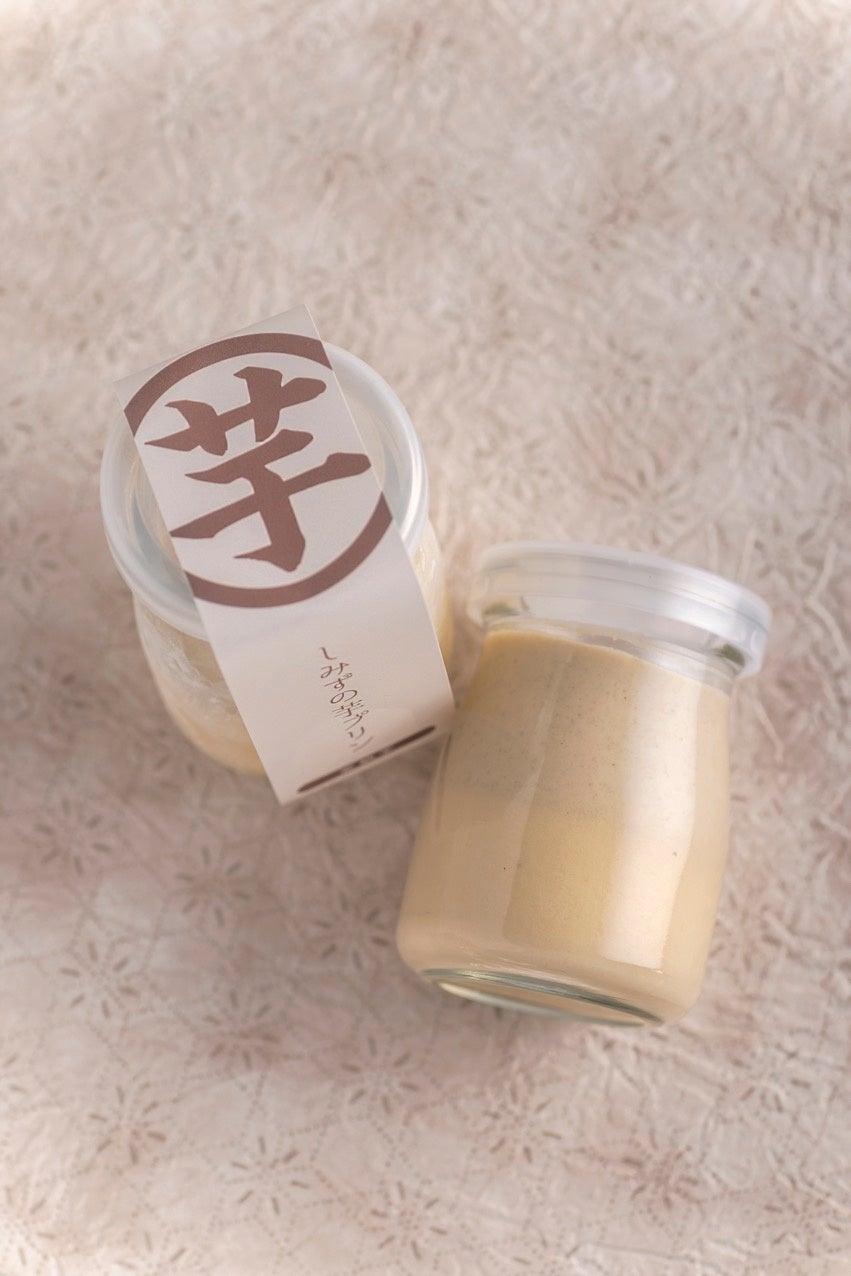 芋のペーストがとプリンが二層にわかれており、中には角切りのりんごが入っています。りんごの食感と二つの味が楽しめます。