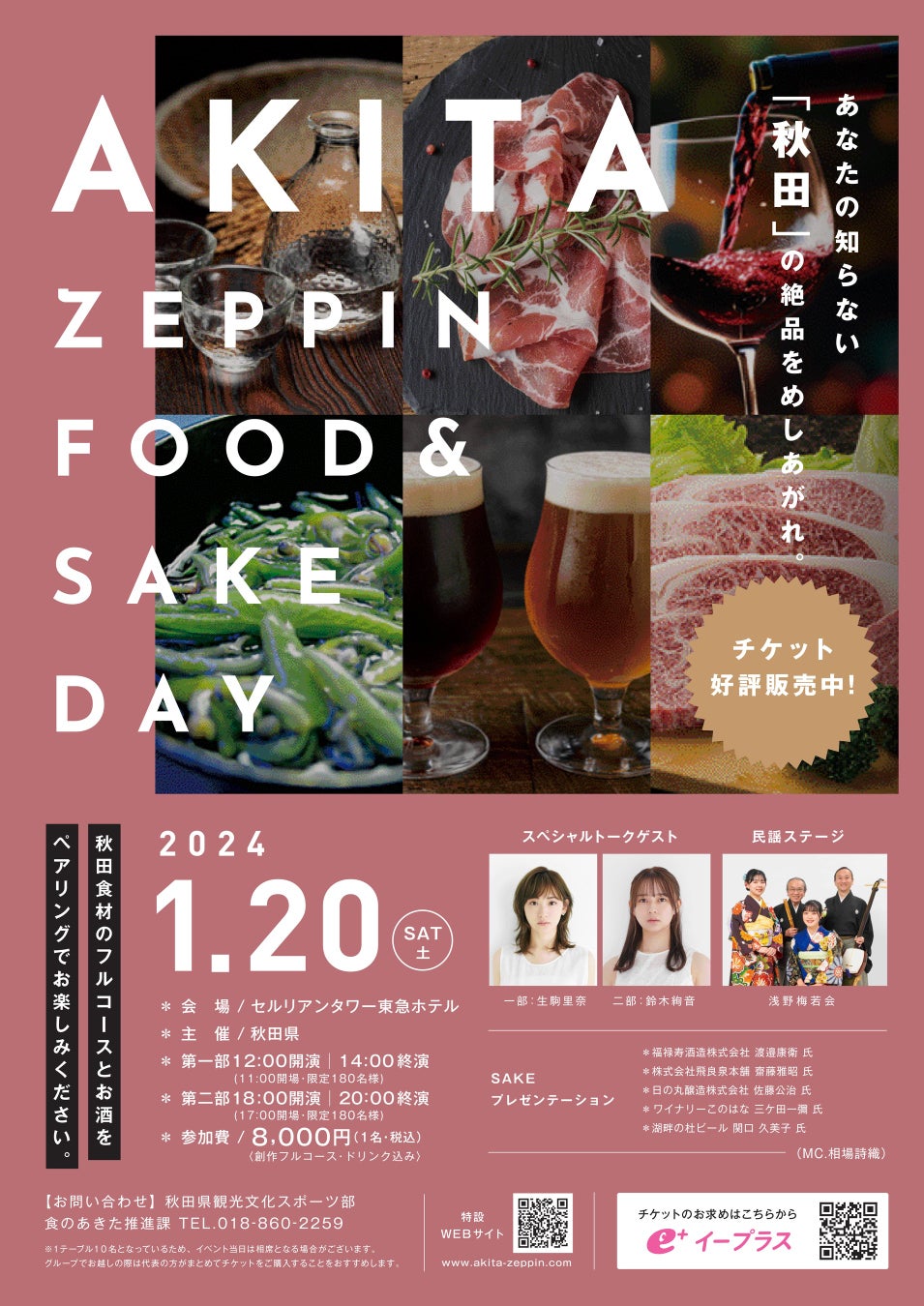 【秋田県主催】AKITA ZEPPIN FOOD&SAKE DAY 2024年1月20日(土)第一部12:00~14:00、第二部18:00~20:00
