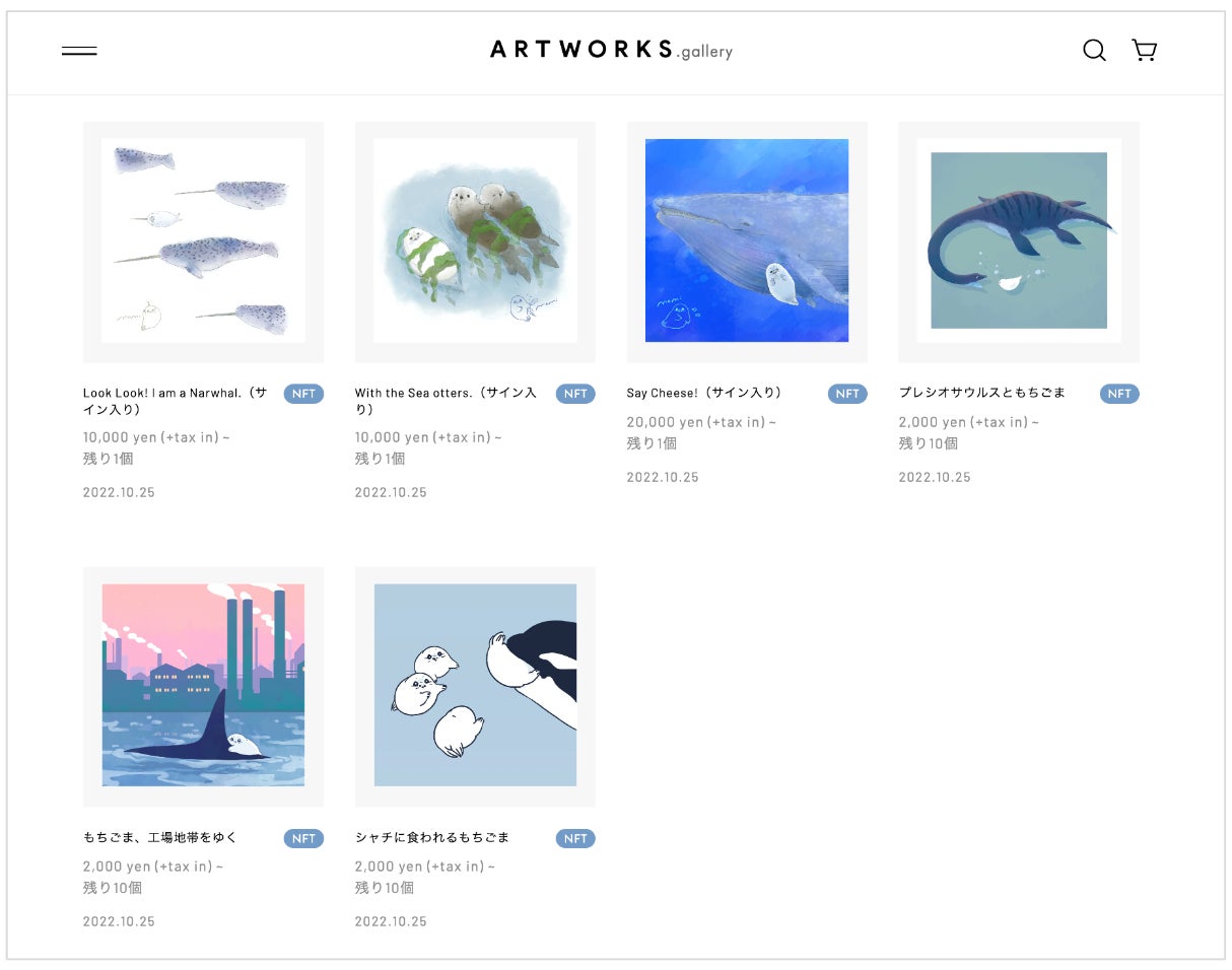 今後、ARTWORKS.galleryにご登録いただいているクリエイターの方を中心に、NFT作品としての販売取り扱いを随時拡大してまいります。