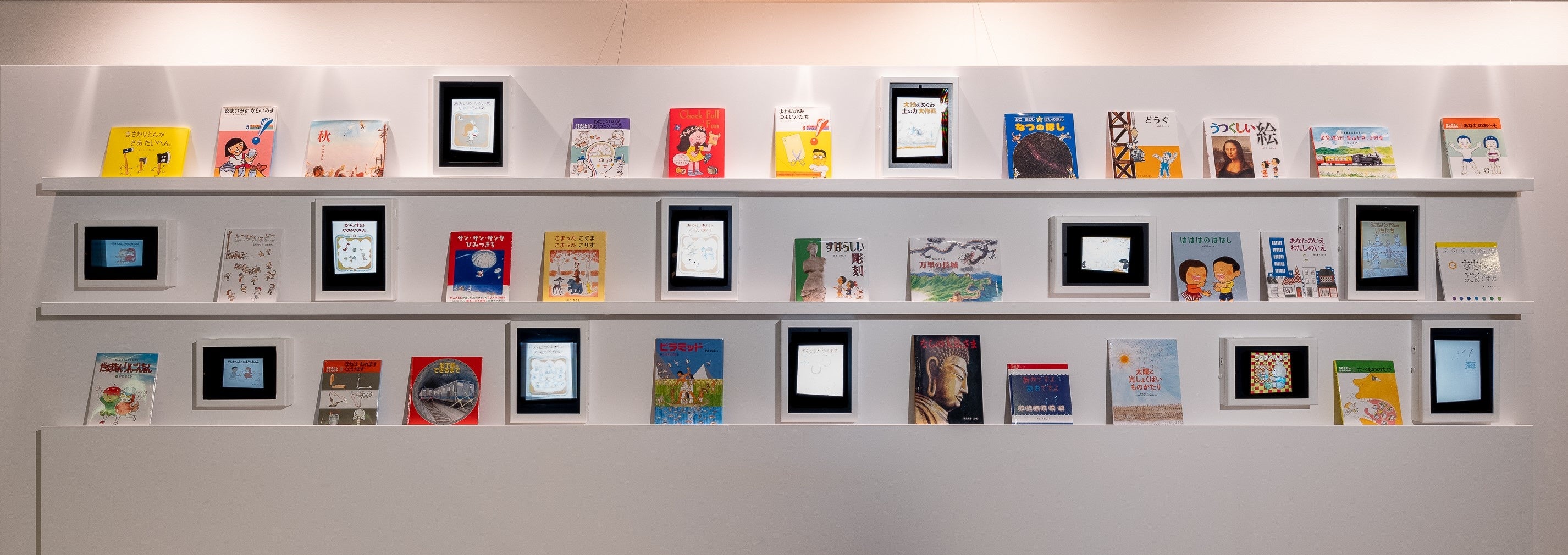 本展のために、NTTインターコミュニケーション・センター[ICC]の協力によって制作された、かこさとし絵本の書影を使用したデジタルコンテンツを、本展会期中Bunkamura 1Fエントランスウォールで展開します。