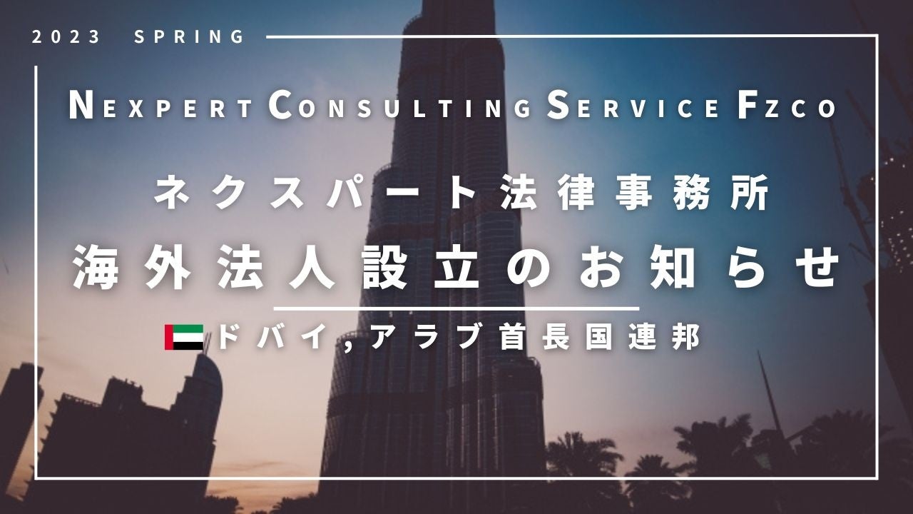 2022年12月23日、ネクスパート法律事務所は、日本企業の海外進出支援の実現に向けて、ドバイ首長国 (Dubai) にコンサルティングサービス会社「NEXPERT CONSULTING SERVICE FZCO」を関連会社として設立いたしました。