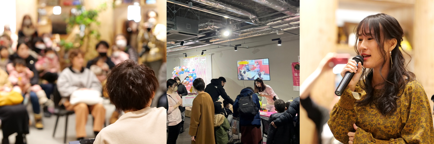 本イベント「ファミリーフェス」は、子供向けの性教育を記した絵本「いきている ただそれだけで」の出版イベントとして開催したもので、絵本の読み聞かせと子供向けにお祭り風の模擬店や、協賛企業各社からのサンプリングを実施したイベントとなります。当日は、執筆者のあおきかなえ氏・戸沼りさ氏の2人がご登壇され、子供の性教育を親と共に考える場となりました。
