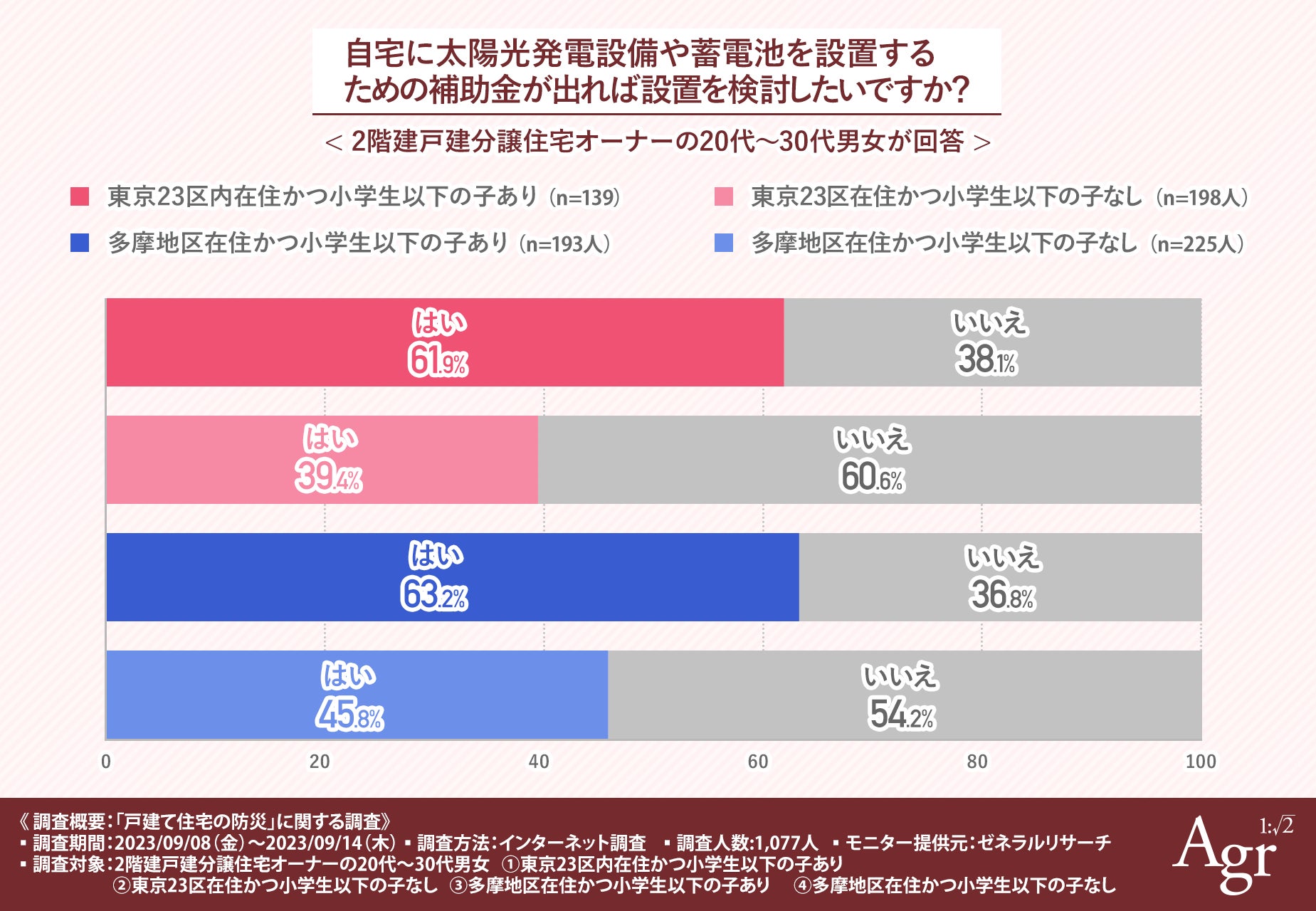 23区内在住の子どものいる家庭の半数以上は蓄電池を設置