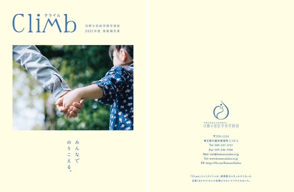 小児医学・医療・保健の発展を支援する公益財団法人川野小児医学奨学財団(所在地:埼玉県川越市、理事長:川野幸夫/株式会社ヤオコー代表取締役会長)は、2021年度版より事業報告書をリニューアルし、2022年7月19日に「Climb(クライム)」として発行いたしました。