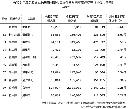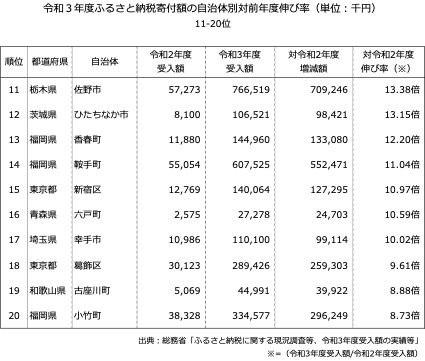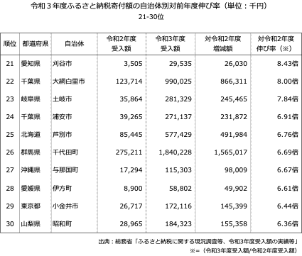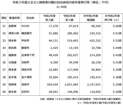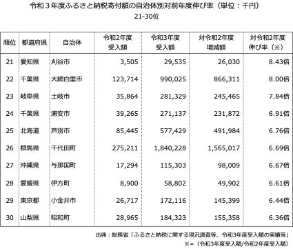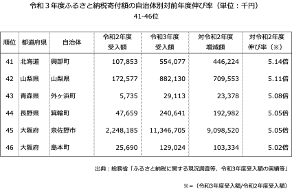 「令和3年度ふるさと納税寄付額の自治体別対前年度伸び率を分析」の主な結果
