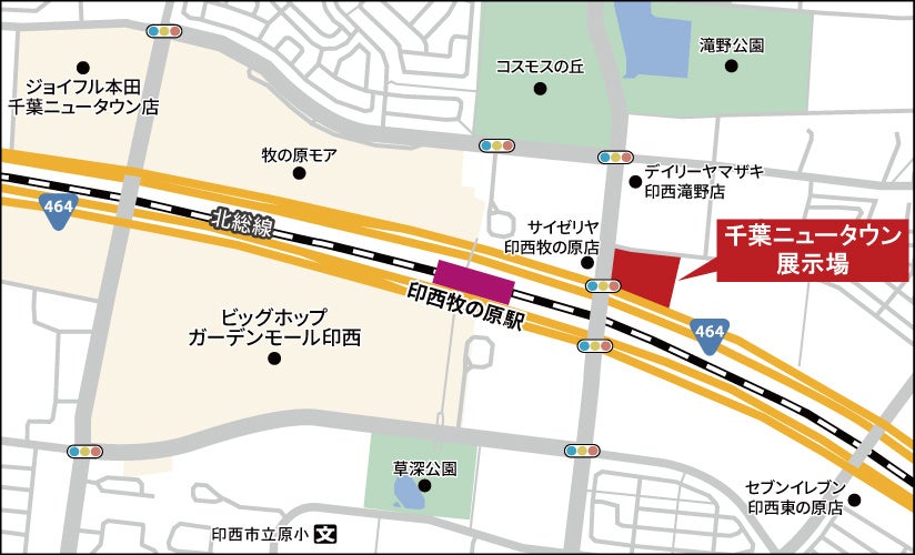 アクセス : 国道464号沿い 「印西牧の原駅」より徒歩3分