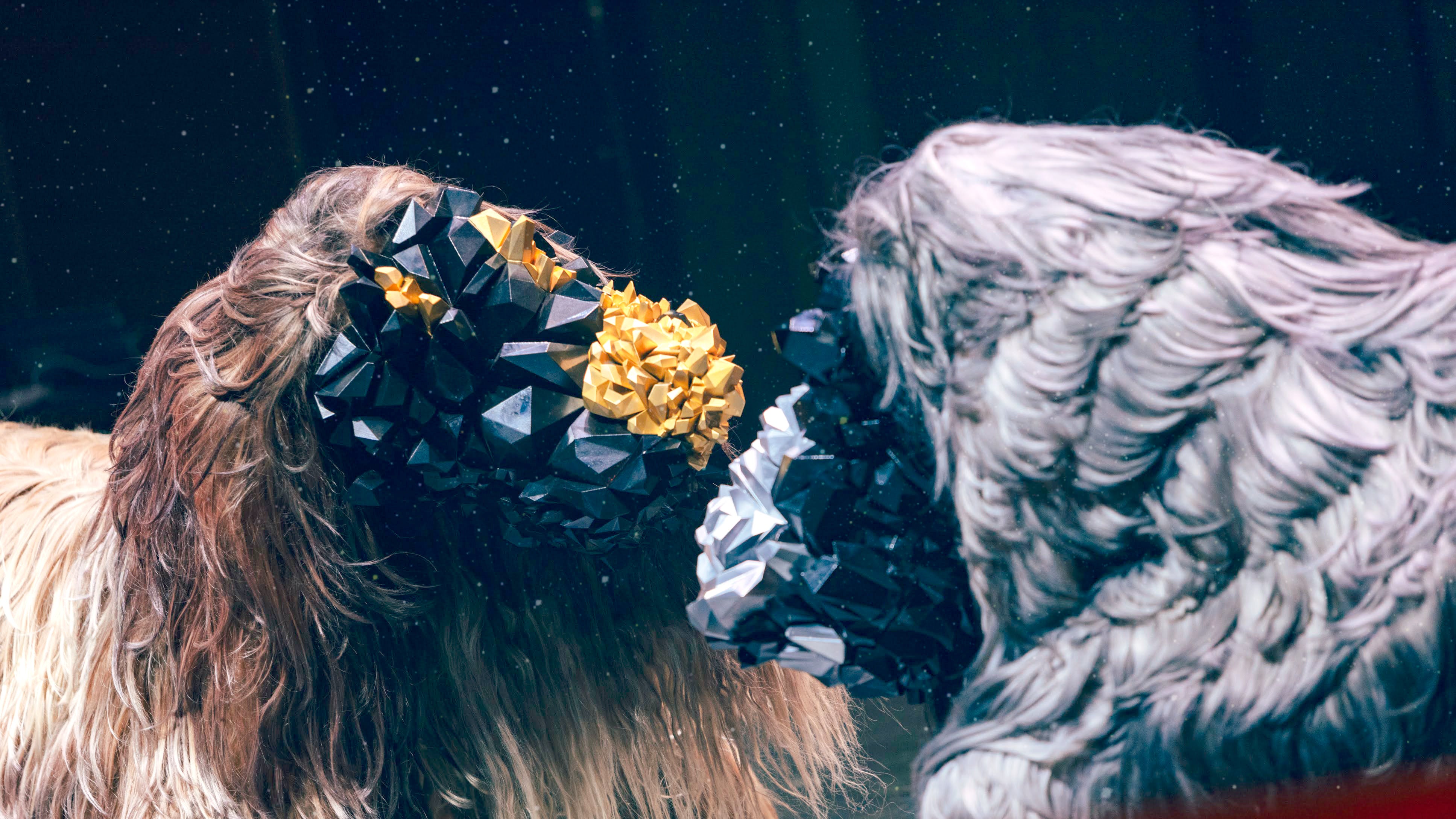 登場する金と銀の2頭の獅子はオリジナルで製作されています。東京のビジュアルデザインスタジオWOWによる「鉱石」をモチーフにしたデザインは、3Dプリンティングによって形成され先鋭的でありながら普遍性を感じさせる仕上がりに。