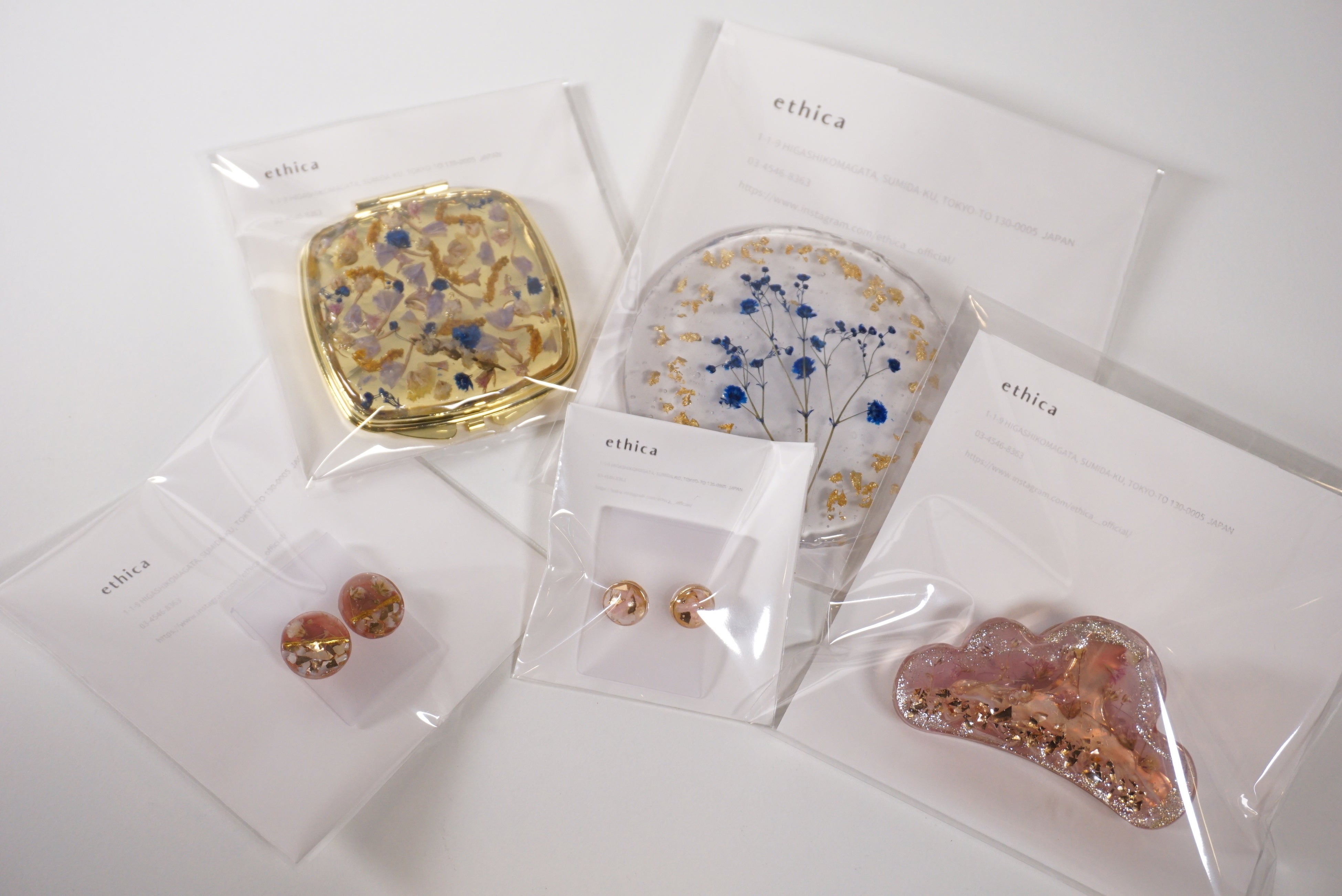 日常で使えるアクセサリーや、お部屋を彩るフラワーボトルやアロマサシェなどインテリア小物も販売!