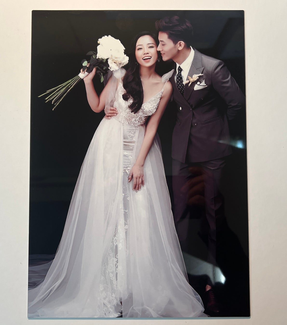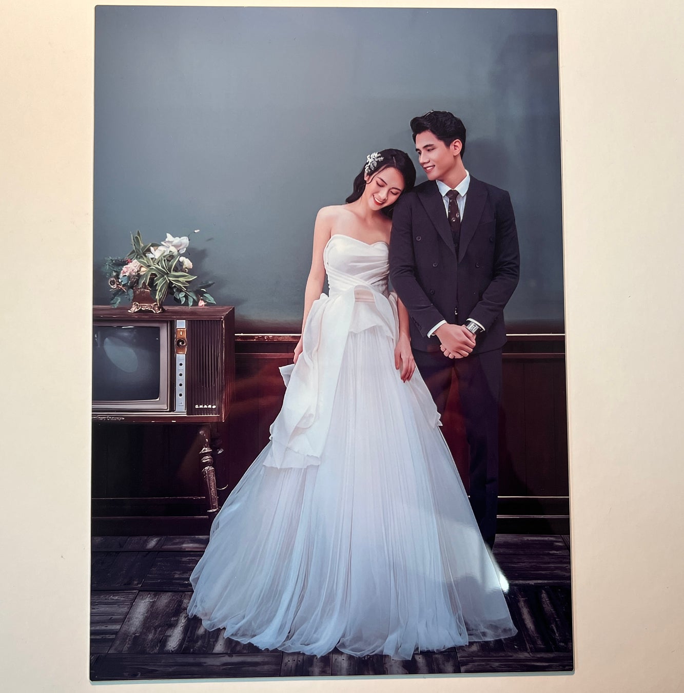 お二人の特別な日を、永遠に色褪せないメタルジークレーボードに。挙式後は新居のインテリアとして、感動の瞬間をいつまでも楽しめます。NFTでデジタルデータを共有し、ウェディングフォトのシーンをメタルジークレーボードにすることができます。