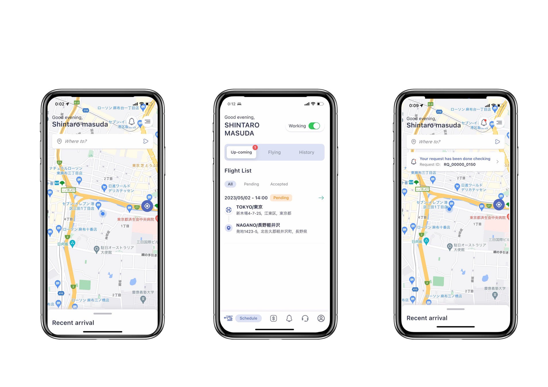 中長距離の移動や不便な地域へも簡単に移動が可能。観光だけでなく、ゴルフや出張など幅広い要望に応えていくエアモビリティアプリケーション。