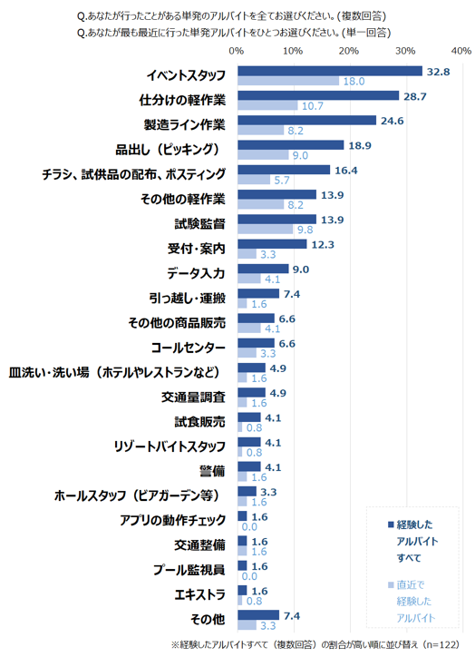 Q.経験のある単発アルバイト(複数回答/単一回答)