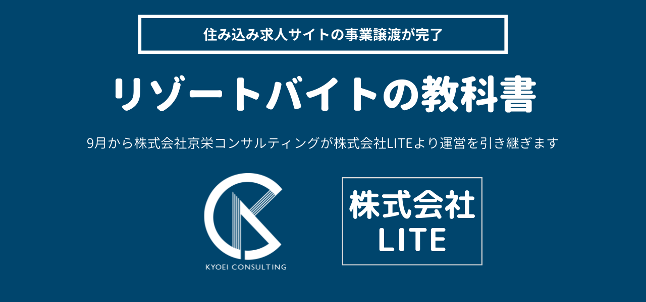 その中で、住み込み求人と親和性の高い「リゾートバイト」に特化したwebメディアである「リゾートバイトの教科書」を運営する株式会社LITE様と交渉を進め、この度事業譲渡をいただく運びとなりました。