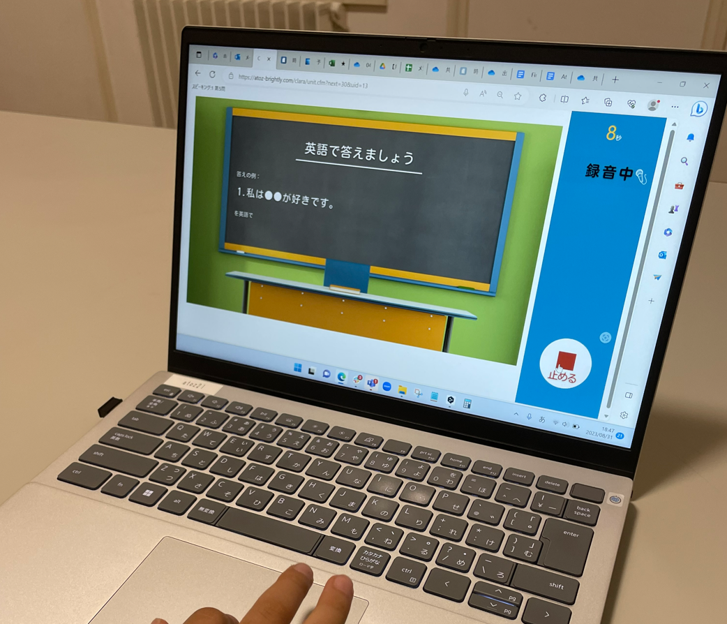 学習指導要領のうちの「話す」技能の評価には、これまで児童一人あたり約3分の個別テスト時間がかかるケースもあり、例えば児童数が30人のクラスでは全体で90分以上かかる状況も発生しています。今回「Clara」を使うことで、教室内で児童がいっせいにテストを受けることが可能となり、90分かけていたテスト時間が20分程度で完了。空いた時間をテストの復習やALTとのコミュニケーションに充てることが可能となりました。