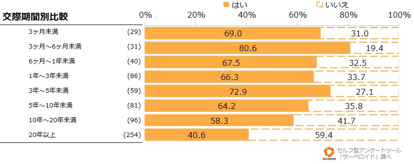 Q3.パートナー(恋人・配偶者など)と付き合っている期間はどれくらいですか。結婚をしている方はお付き合いから結婚までのトータル期間を教えて下さい。