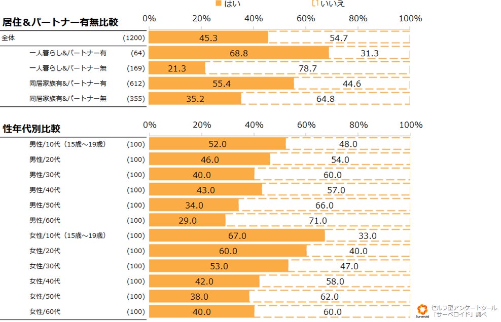 調査方法:インターネット調査(セルフ型アンケートツールSurveroid(https://surveroid.jp/)を利用)