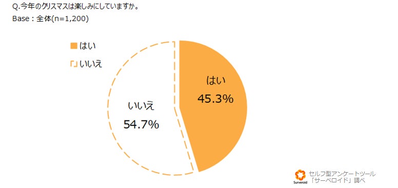 今年のクリスマスを楽しみにしているかを聴取したところ、楽しみにしていないと回答した人が過半数以上を占める結果となりました。