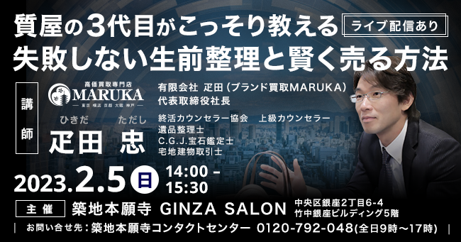 【LIVE配信あり】終活セミナー「質屋の3代目がこっそり教える、失敗しない生前整理と賢く売る方法!!」