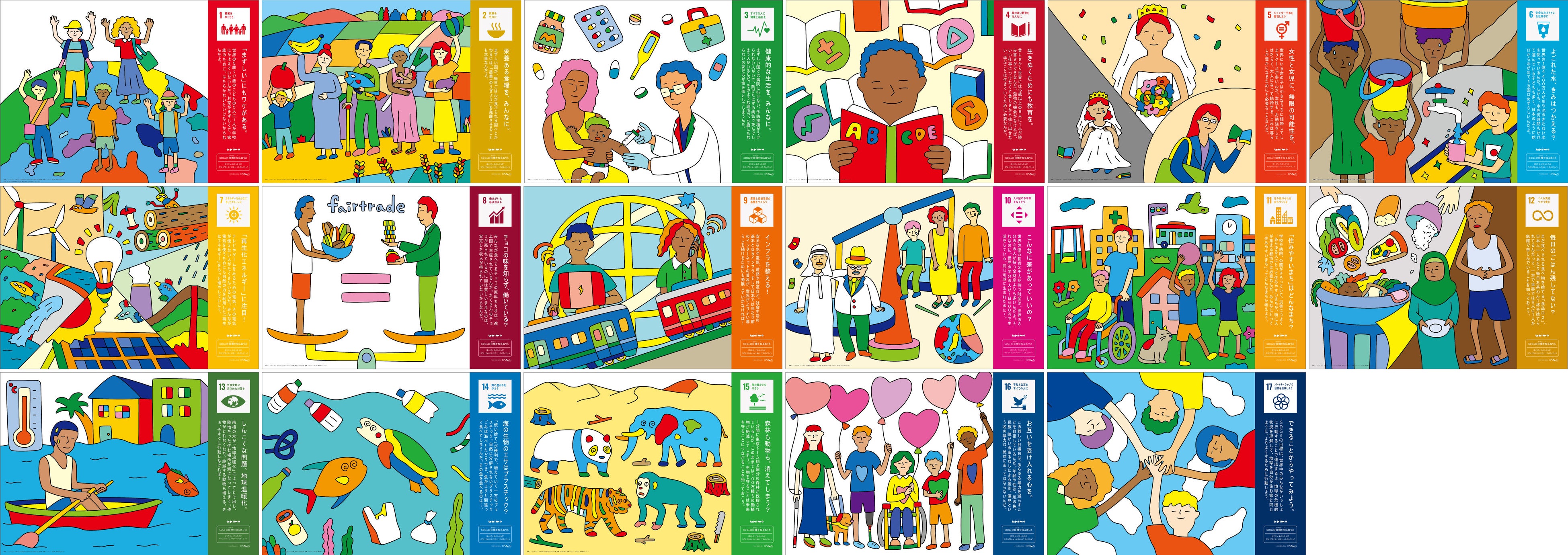 UniFes(ユニフェス)のメインビジュアルは、未来に向けた4つのメッセージを込め、 SDGs が持つ難いイメージを払拭し、多幸感溢れる明るい未来を示唆しています。環境・社会・地域の課題に対し関心を高く持ち、楽しく取り組む先に、持続可能な社会が広がる。そんなビジョンを投影しています。
