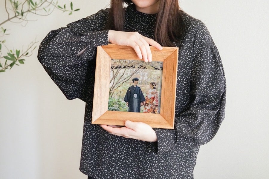 福島県会津若松市の会津桐工芸職人によって手作業で製作された桐のフォトフレームも付属します。軽量なので、壁掛けはもちろん、付属のスティックを使用すれば、立てかけて飾ることも可能です。