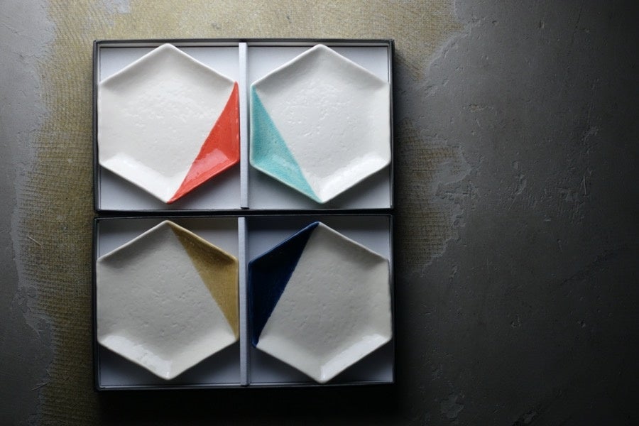 先人の残した「掛け分け」という2色の釉薬(うわぐすり)を塗り分ける伝統的な技法と六角形のうつわを組み合わせ、若い世代に向けて販売する過程で、ブランドコンセプトを体現しています。