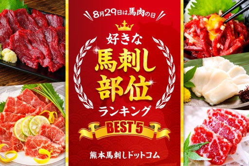 8月29日は年に一度の馬肉(829)の日!馬刺し・馬肉通信販売 年間売上No1※1の「熊本馬刺しドットコム」(https://kumamoto-basasi.com/)を運営する株式会社利他フーズ(本社:熊本市、代表取締役社長:猪本真也)が「好きな馬刺し部位アンケート」を実施。全国の馬刺しファンが選んだベスト5を発表します。