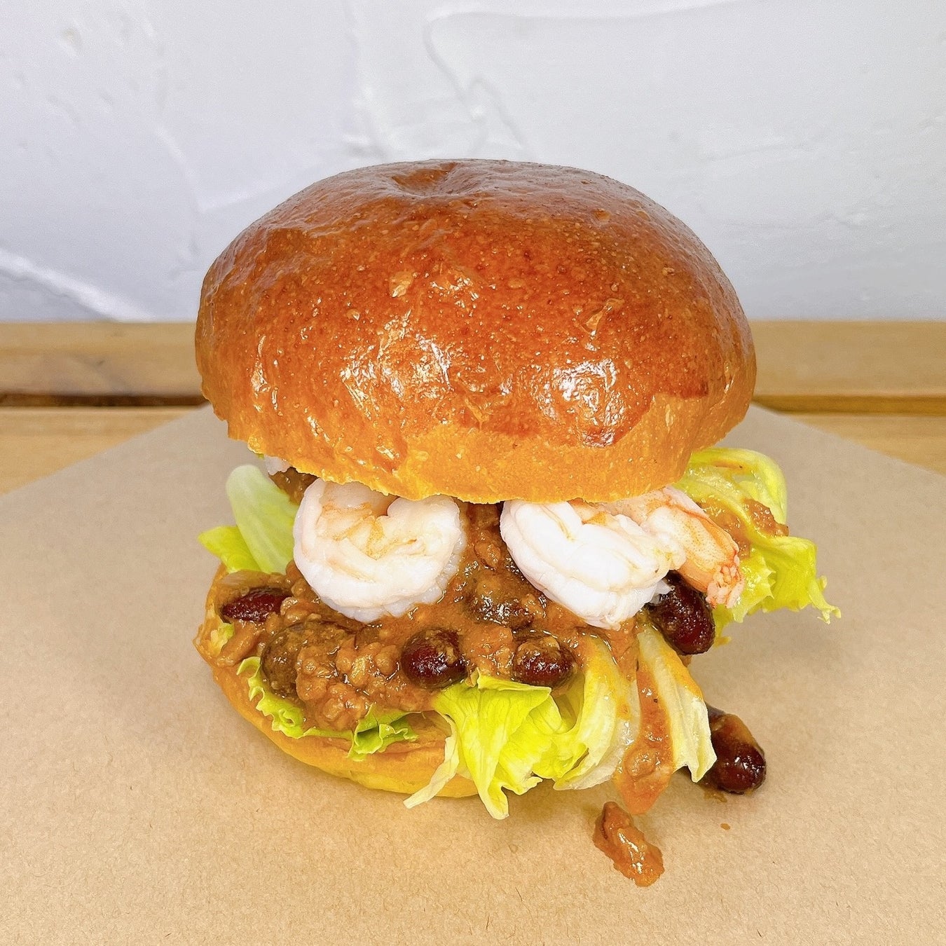 バンズはふわふわの柔らかい口当たりにしっとりリッチな風味のブリオッシュ風で、微かな甘味が具材のシーフードと相性抜群。メニューはシーフードをたっぷり入れた「大盛りバーガー」を復活し、シーフードならではのヘルシーだけどもボリュームあるメニューや、ボイルえびにピリ辛のチリビーンズを合わせた「チリビーンズえびバーガー」が新たにメニューに加わります。