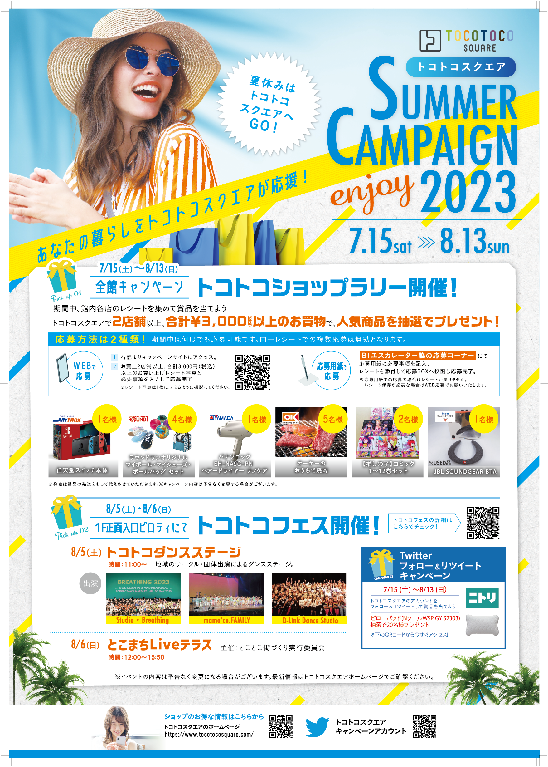 この夏はトコトコスクエア全館をあげてキャンペーンを実施します。