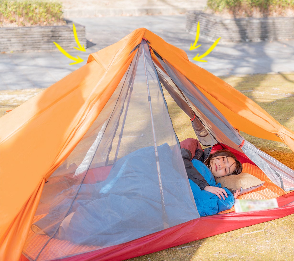 - インナーテントはメッシュ素材で通気性がよく防虫効果も抜群!