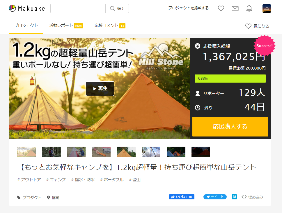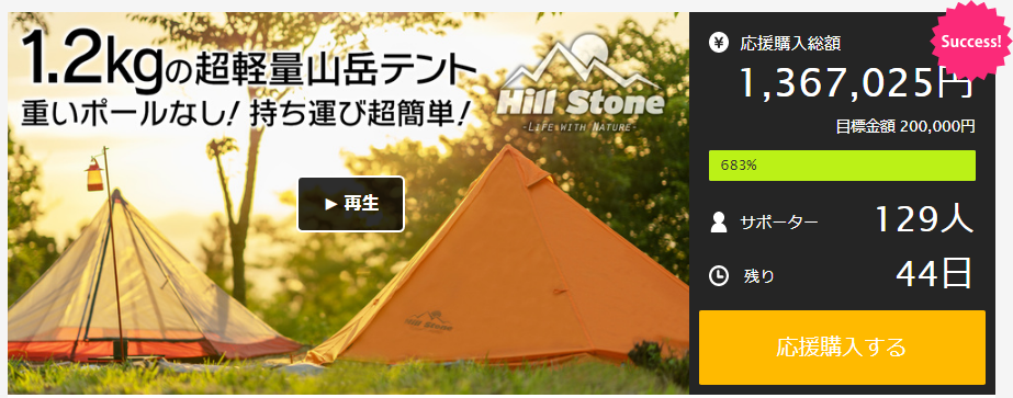 錦商事株式会社(本社:福岡県福岡市、代表取締役:卞 慧)は応援購入サービスMakuake(マクアケ)にて、2022年7月25日(月)〜9月10日(土)の期間限定で、「超軽量山岳テント」の先行予約販売を開始しました。(Makuakeプロジェクトページ:https://www.makuake.com/project/hill_stone/)\早割受付中/
