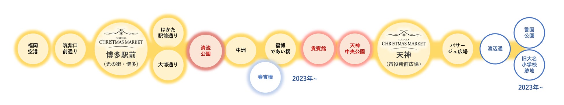 クリスマスマーケットなどの拠点を、華やかなイルミネーションで結び、歩いて楽しい、周って嬉しいクリスマスの街に!
