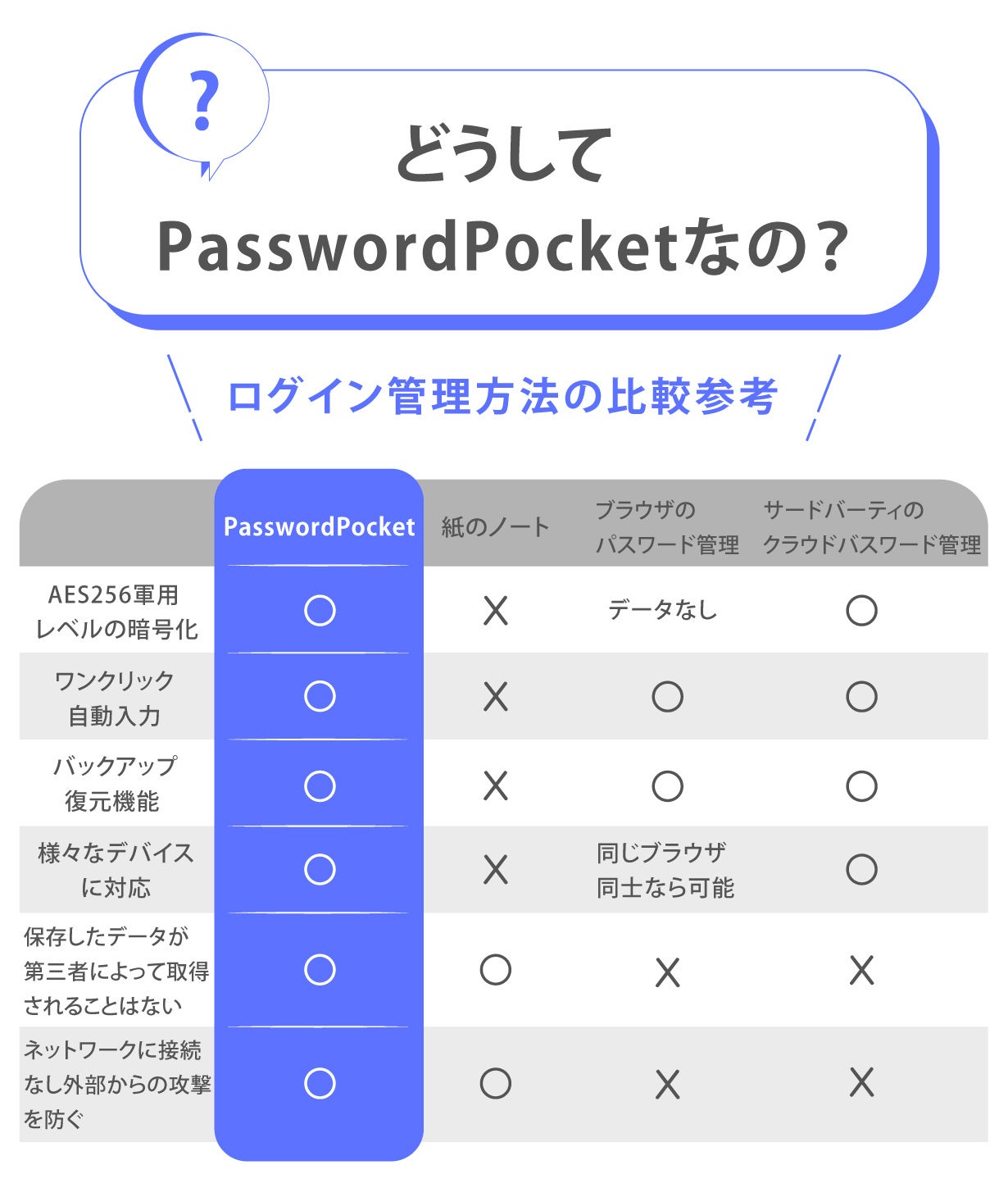 ログイン情報をPasswordPocketに覚えさせておくだけで、