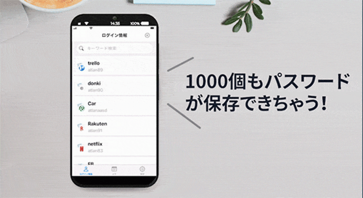 PasswordPocketは最大1000個のパスワードを簡単に管理・保存できるので、