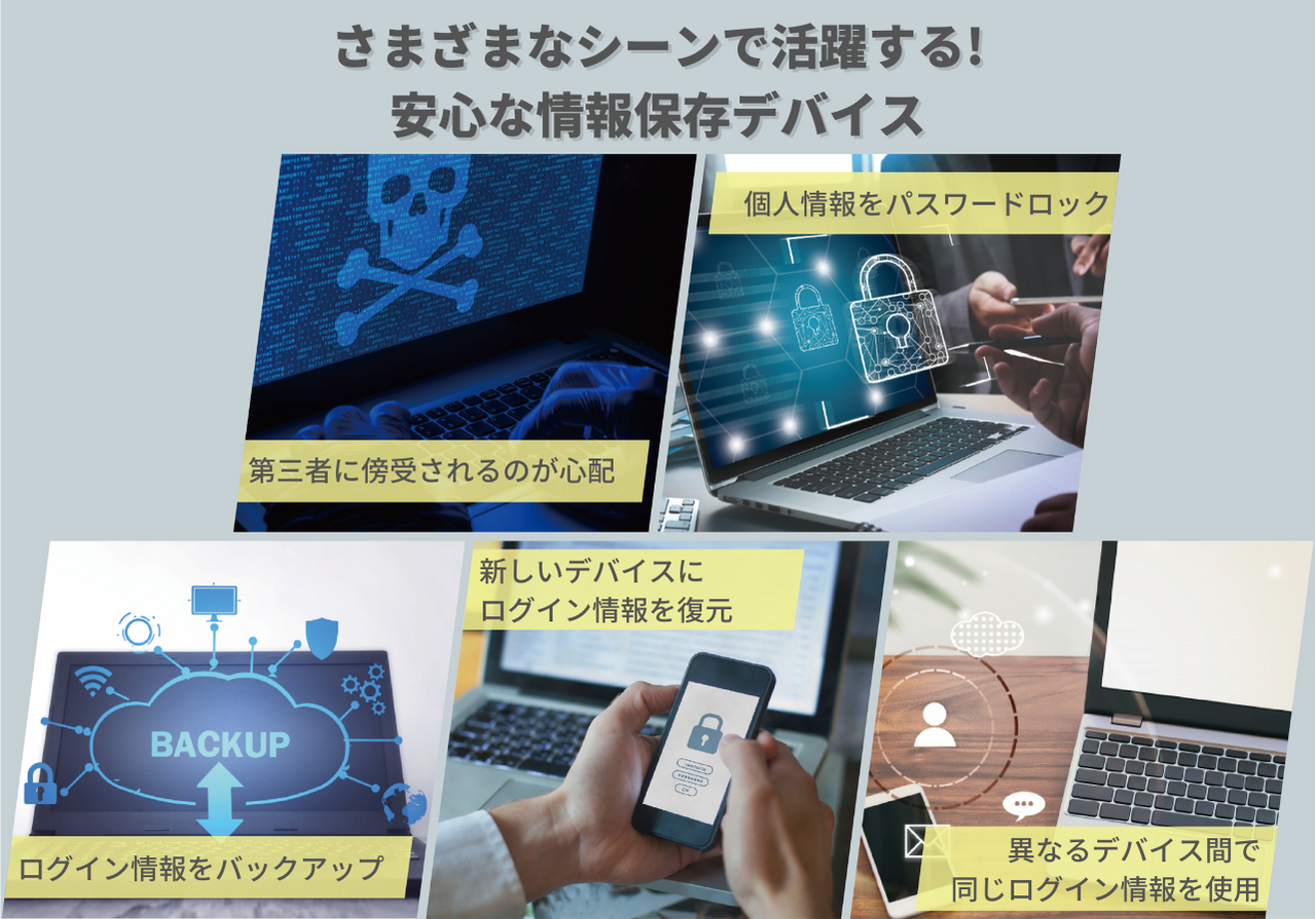 最大1000のログイン情報をまとめて管理、データをすべて保護!