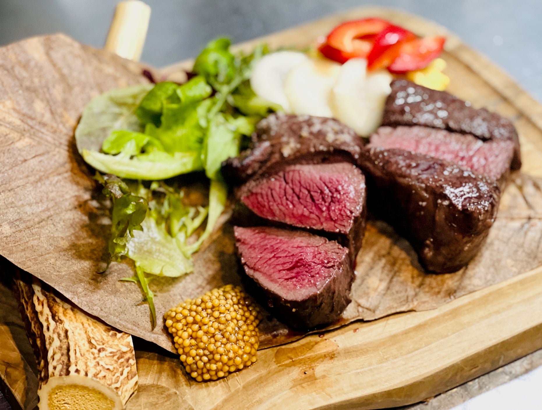 ・脂がたっぷりのった「えぞ鹿のロースト」 バルサミコとこけもものソース