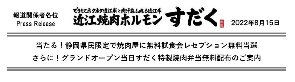 当たる!静岡県民限定で焼肉屋に無料試食会レセプション無料当選!さらに!グランドオープン当日すだく特製焼肉弁当無料配布のご案内