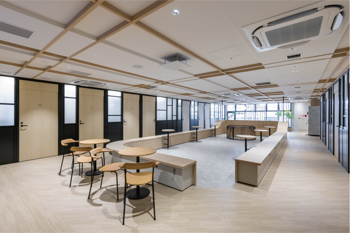 新オフィスはビジネスエアポート京橋の4Fに構えております。ビジネスエアポート京橋はオフィスビルの多様な利用形態を提案し、そして様々なバックグラウンドの利用者を受け入れるというコンセプトのもと、DIYスペースの設置やペット同伴可能フロアの併設など、全国的にも革新的な取り組みを行っています。