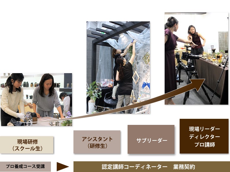 大手企業様による空間・商品が提供され、経験出来る機会や企画が多く設けられておりますので、スクール生でありながら実際にコーディネーターとして必要なスキルが習得できます。