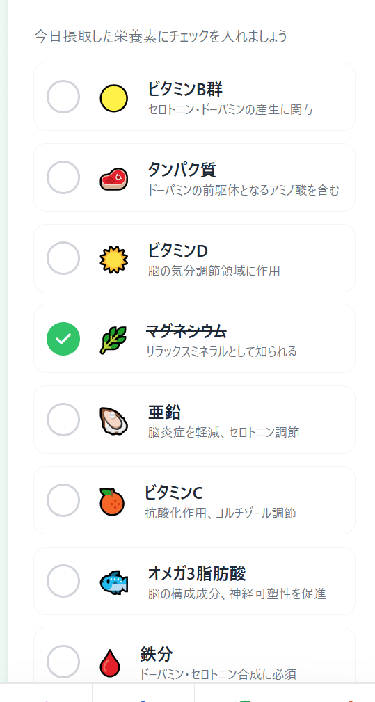 最新の栄養精神医学研究によると、食事とメンタルヘルスは密接に関連しています。セロトニン(幸福感)やドーパミン(やる気)などの神経伝達物質の産生には、特定の栄養素が必要です。