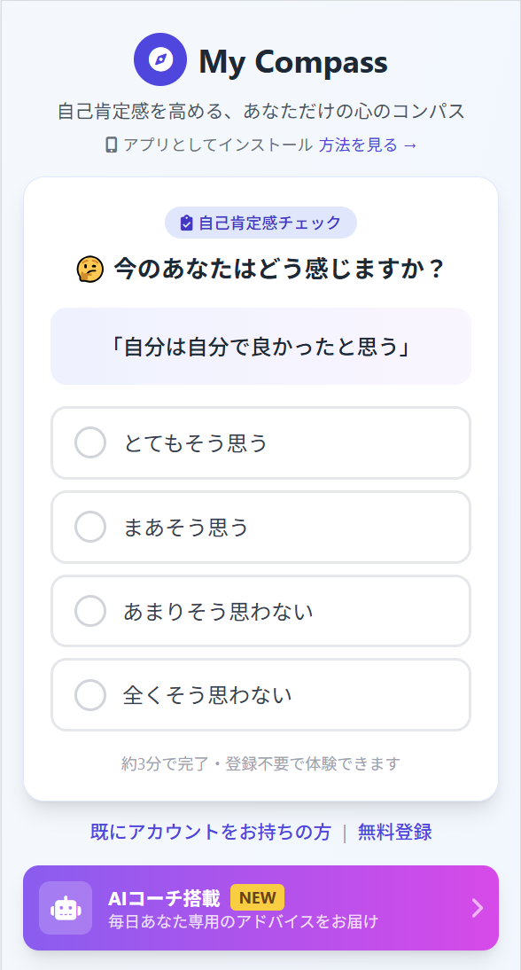自分を好きになる第一歩を、My Compassと一緒に踏み出してみませんか?」