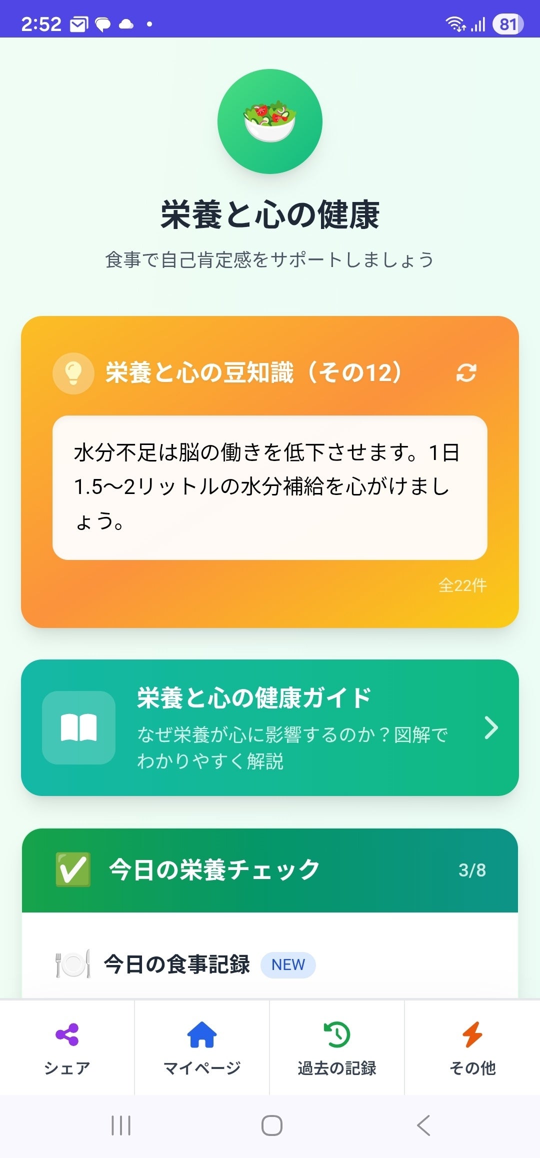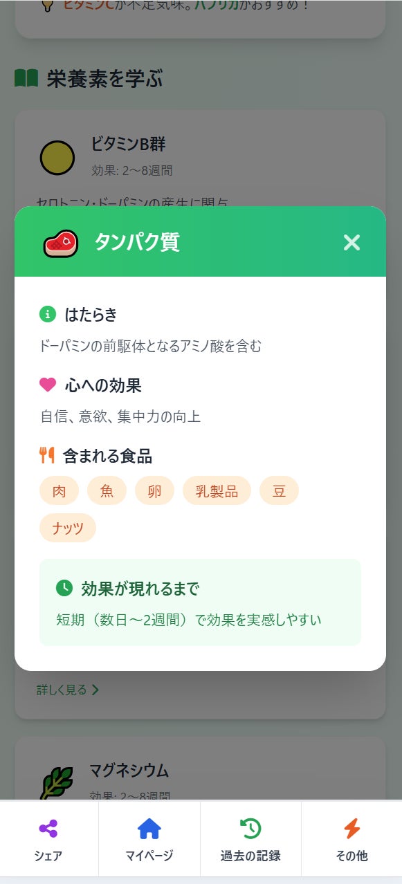 【特徴7】栄養と心の健康:AI搭載の食事記録・栄養分析機能