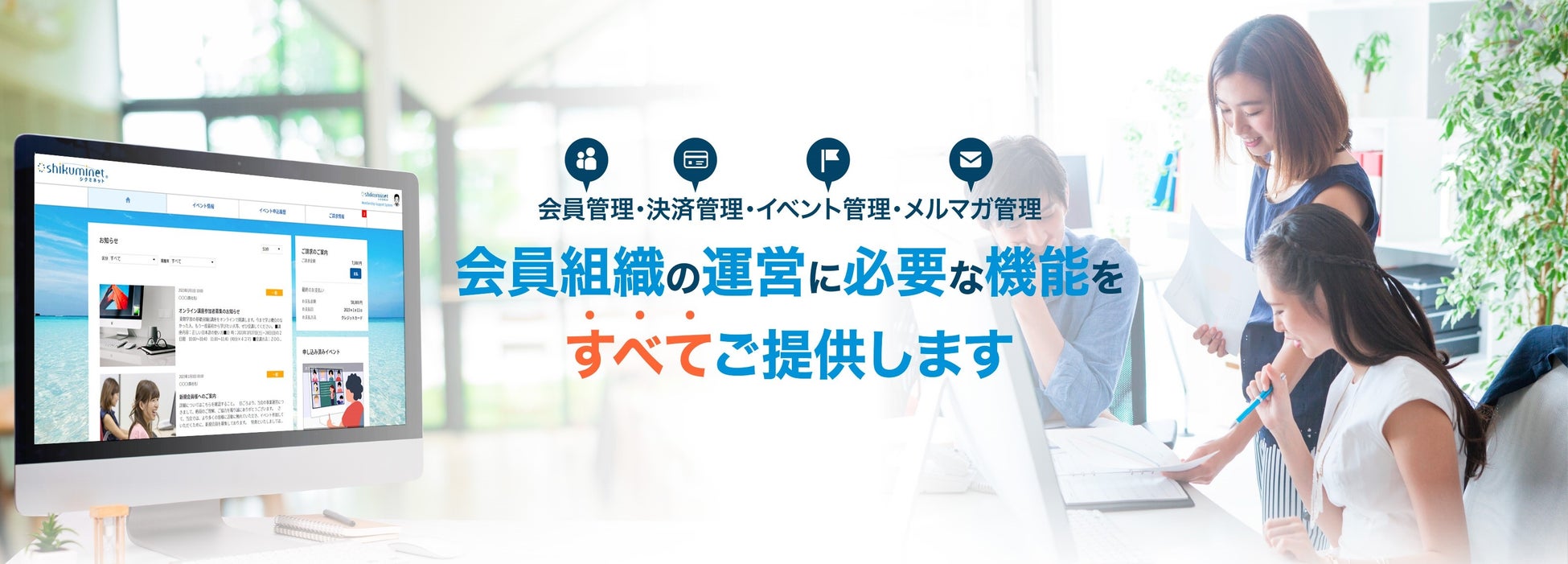 様々な団体のノウハウを基に構築した会員管理サービス「シクミネット」は、会員管理だけでなく、会費徴収機能、イベント申込機能、メール配信機能を備えたプラットフォームです。