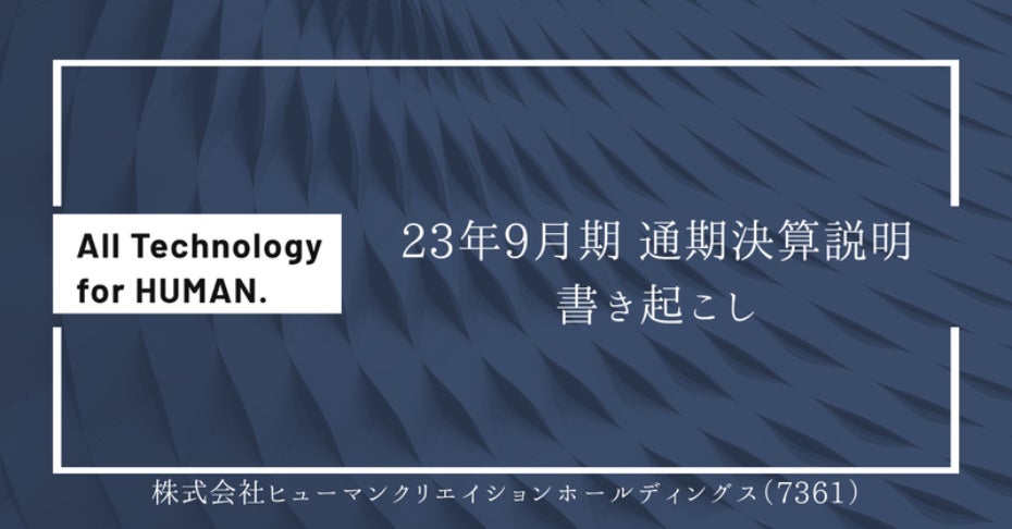 23年9月期通期決算説明書き起こし(IRマガジン):https://note.com/hch_ir_7361/n/n5861af02b6b6