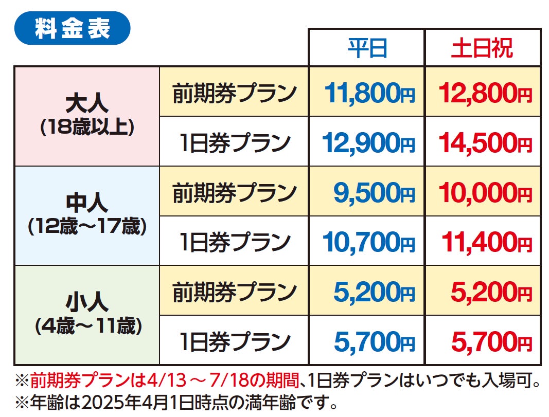 ※前期券プラン(4/13~7/18)入場可 数量限定、1日券プランは万博期間中いつでも入場可。