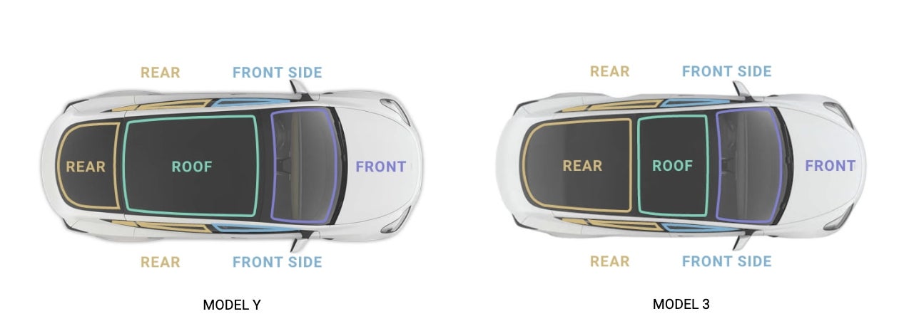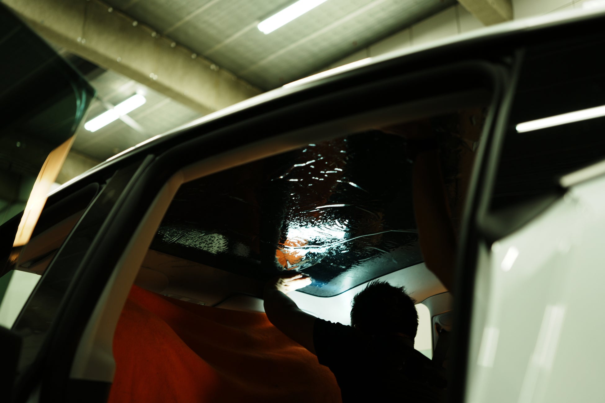 モデルYのパノラマルーフは横幅が1,100mm以上あるので、既存メーカーのそのほとんどがフィルム幅が足りず、一枚で覆うことが出来ません。フィルムを横使いして2枚張りで覆うとなると繋ぎ目がはいってしまい美しくないために、私たちは1枚で覆えるフィルムを開発しました。