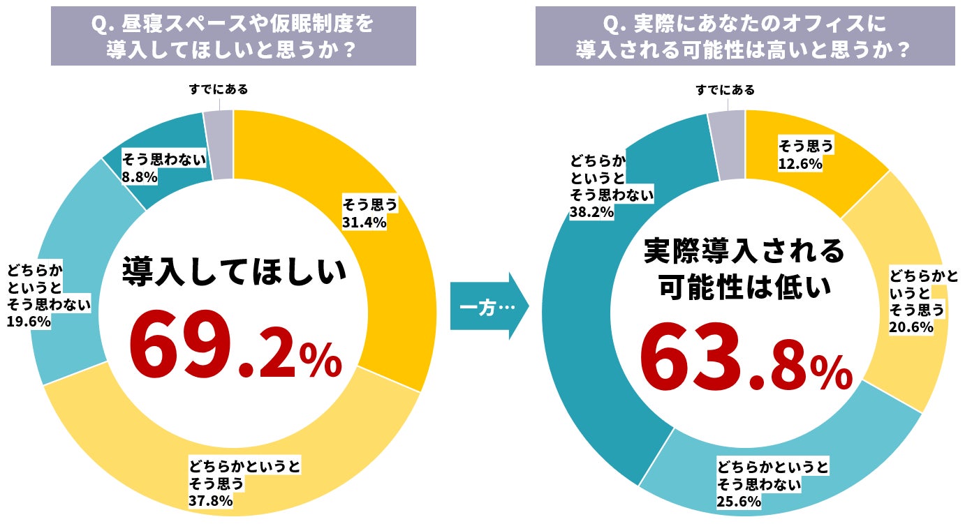 - Q4. 『昼寝制度』や『仮眠スペース』を、あなたの働くオフィスにも導入してほしいと思いますか?また、現実的に、あなたの働くオフィスに導入される可能性はどれくらいあると思いますか?それぞれお答えください。