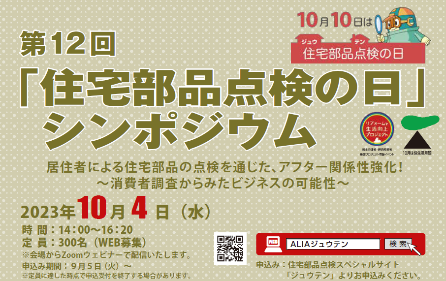 「第12回住宅部品点検の日シンポジウム」を10月4日(水)に開催!