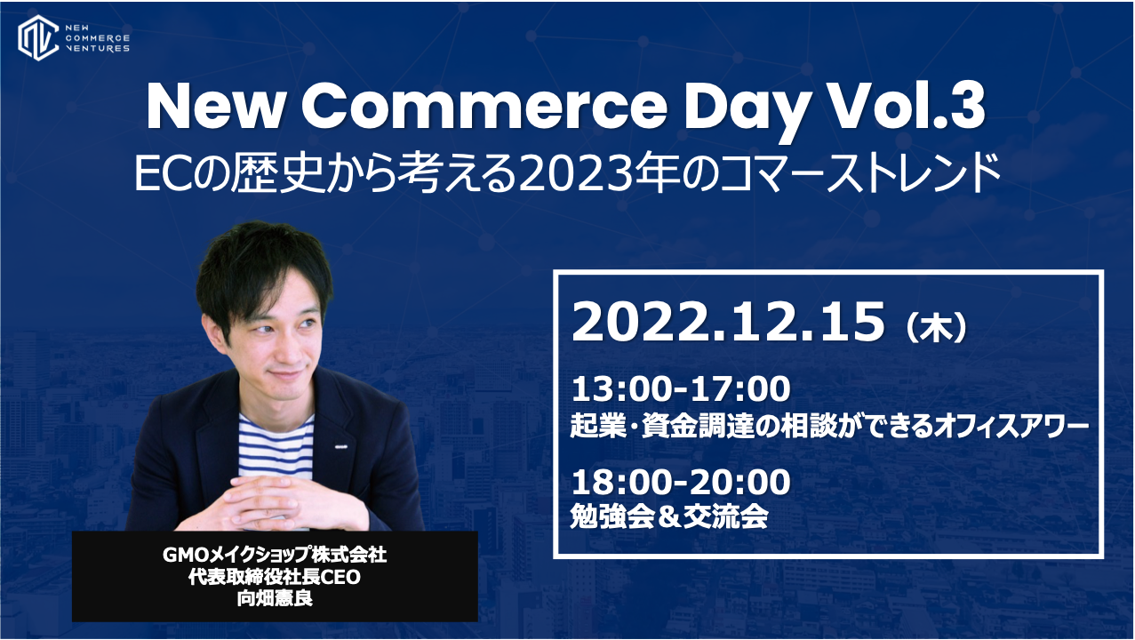 小売・流通のDXを支援するNew Commerce Ventures株式会社(本社:東京都品川区、代表取締役:松山馨太・大久保洸平、以下NCV)は、コマース領域のスタートアップや事業会社を対象とするイベント『New Commerce Day Vol.3 ECの歴史から考える2023年のコマーストレンド』を開催します。